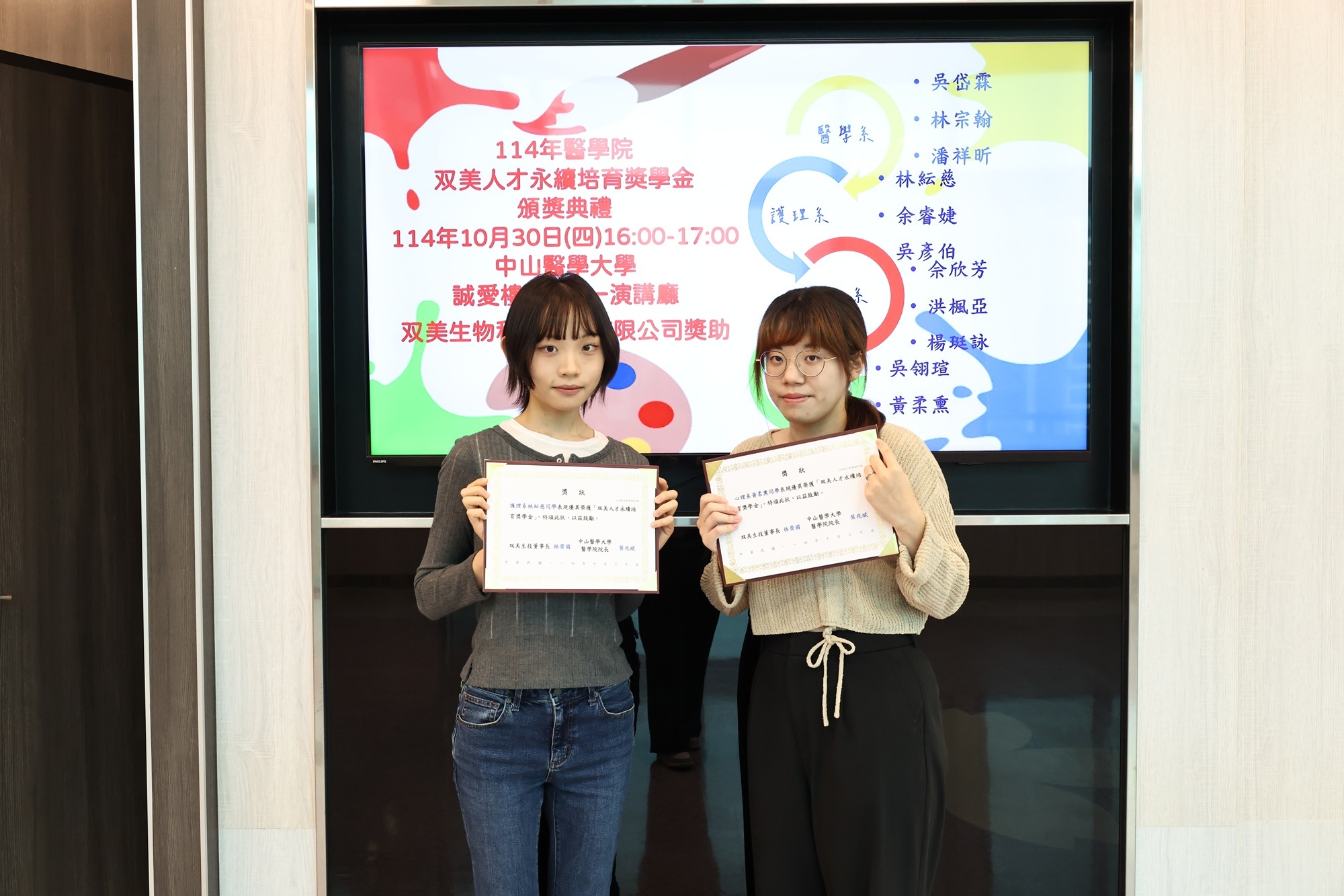 恭喜本系吳翊瑄、黃柔熏同學榮獲双美人才永續培育獎學金。